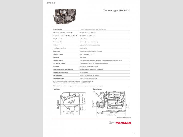Vendo despiece de motor Yanmar 6BY2 de 220 cv turbodiesel.
